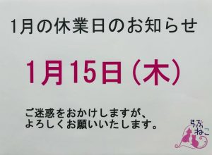 【1月の休業日のお知らせ】